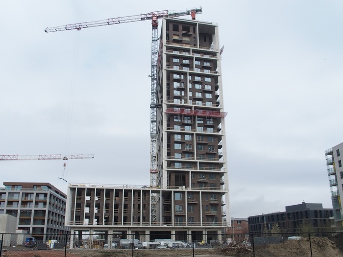 Het gebouw heeft een totaal Volume van 39.532,61 m3 en telt 26 verdiepen. Door de terugspringende gevels ontstaat er ruimte voor terrassen, tuinen en/of tuinbergingen. De onderste plint van het gebouw bevat een dubbel hoge passage, herbergt de lobby’s voor de kantoren en de toegang tot de woningen.