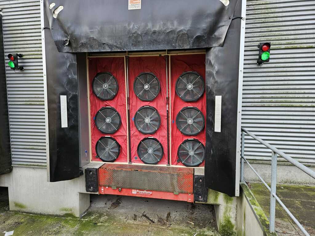 Met een goede voorbereiding en de inzet van ruim 12 ventilatoren is dit met recht een BlowerDoor XL project te noemen. De uitdaging was het uitvoeren van een correcte meting binnen een distributiehal welke operationeel moest blijven. Wij hebben na de nodige voorbereidingen de metingen daarom op een zaterdagochtend uitgevoerd. Geen verstoring van de werkzaamheden dus!