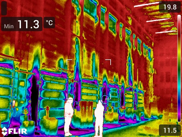 Omdat er vooraf duidelijk was dat er veel verbetering te behalen valt voor dit gebouw, zijn wij reeds om 05:40 begonnen met het thermografisch onderzoek langs de gevel aan de buitenzijde. Zo was er voldoende temperatuurverschil met binnen en buiten om de lekkages zeer goed in kaart te kunnen brengen. Vervolgens zijn wij verder gegaan met de luchtdichtheidsmetingen van het gebouw.