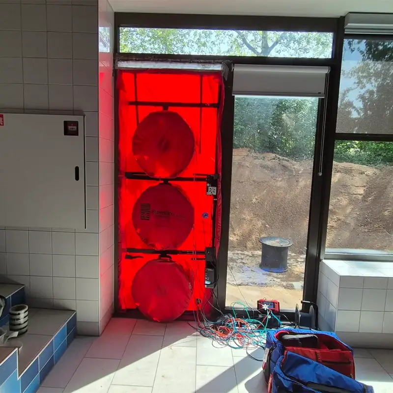 In opdracht van Wind Design Build hebben wij het Feel Fit Center gemeten. Er zijn 3 ventilatoren ingezet en 2 metingen uitgevoerd: één specifiek voor het zwembadgedeelte en één voor het volledige gebouw in het kader van de BENG-eisen. Mooie qv10 waarde voor het volledige gebouw van 0,31.